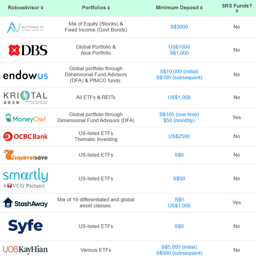 - Stashaway: Get up to S$10,000 managed for free for 6 months by signing up via this link.