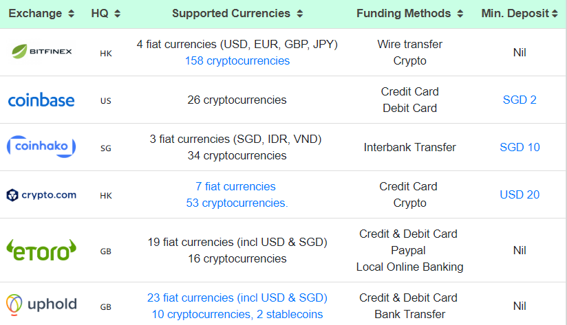 Cryptocurrency or digital token exchanges are websites where one can purchase, sell or exchange digital tokens for other digital tokens or traditional fiat currency (e.g. USD or SGD).