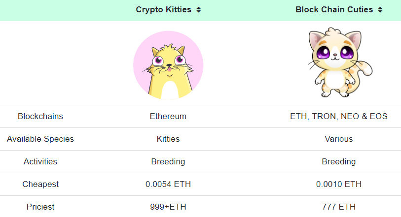 At a Glance: Crypto Kitties vs Blockchain Cuties