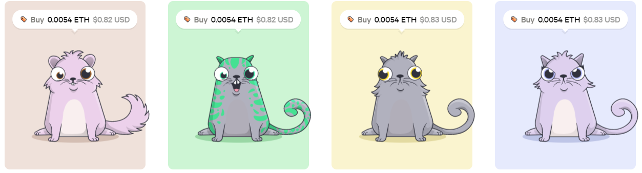 As at the time of writing, the cheapest Blockchain Cutie costs less than 1 USD (0.0010 ETH) and the most expensive are apparently valued at around USD 118,606 (777 ETH).